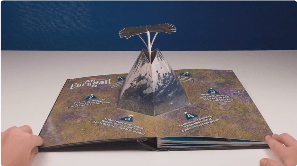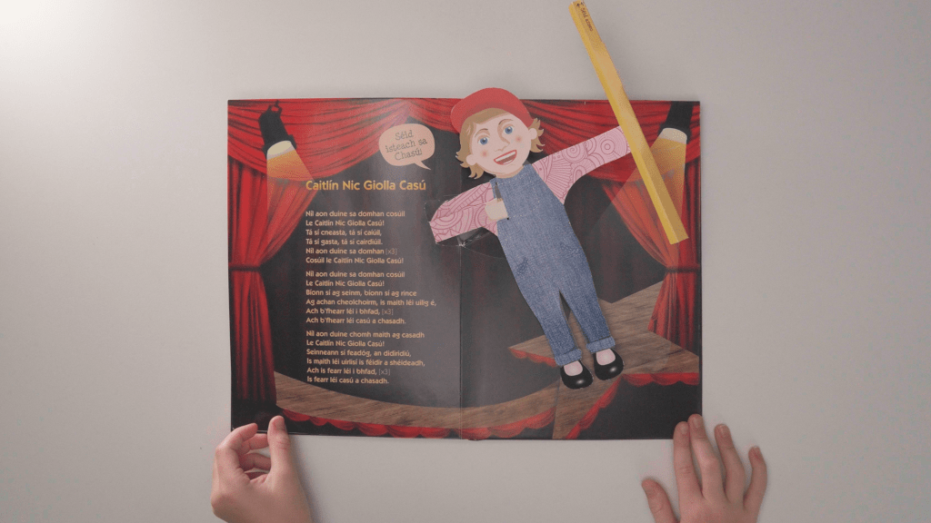 Seo an chéad preableabhar a rinneadh i nÉirinnagus an chead leabhar a bhfuil uirlis ceoil tógtha istigh ann – preabann casú amach as láimh Chaitlín agus is féidir ceol isteach ann. Féach an dóigh leis an chasú a sheinm anseo!